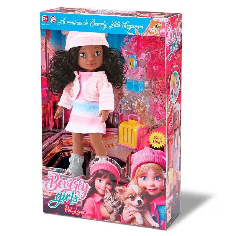 Boneca Beverly Girls Pet Lover Negra 1071 Bee Toys Caixa