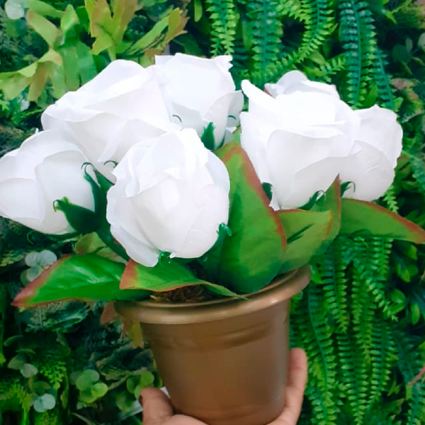ARRANJO BOTAO DE ROSA VASO COLOR PLASTICO