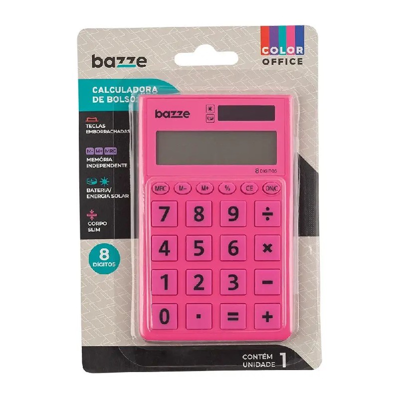 Calculadora 08 Digitos Rosa 618111 De Bolso Bazze