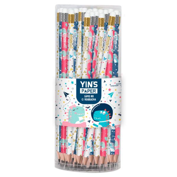 Lapis Esc 72x1 Preto Hb Res C/Bor Yp7844 Dino/Aviozinhos Pote