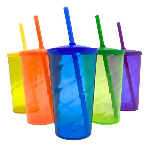 Copo 220cl 500ml Twister Neon C/Tp E Canudo Sort Plast
