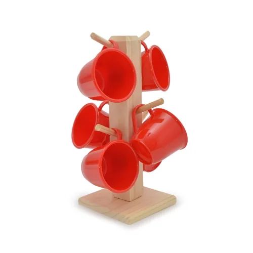 Jg Xicara 85ml 06 Pcs C/Suporte Madeira 137b Vermelho Presente