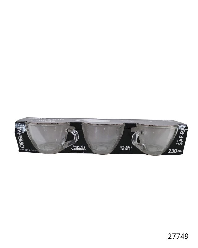 Jg Xicara Cha 03x1 90ml Gl7349 Linha Safira Vidro Estojo Litografado